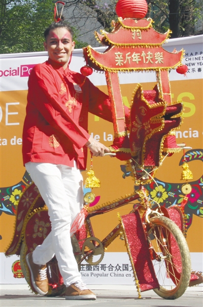 獲得大賽一等獎(jiǎng)的作品是利用廢報(bào)紙?jiān)谧孕熊嚿涎b扮出的巨大“報(bào)紙犬”,狗年元素和綠色出行元素兼而有之,凸顯廢物利用的環(huán)保主題。三人創(chuàng)作團(tuán)隊(duì)中的貝尼托告訴本報(bào)記者,他們經(jīng)營(yíng)一家以紙板、報(bào)紙、塑料等為原料制作手工藝品的小型公司,這次的作品耗時(shí)兩周。他說(shuō):“與去年相比,今年參加比賽的人更多、新點(diǎn)子也更多了,這樣的大型活動(dòng)讓更多墨西哥人對(duì)中國(guó)文化產(chǎn)生興趣?!?/p>