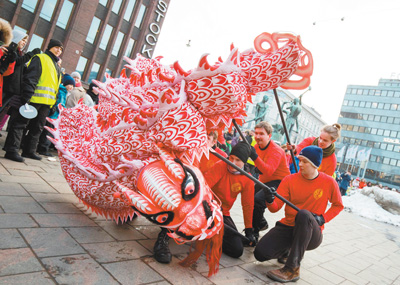 2月15日,第十二屆“歡樂(lè)春節(jié)·赫爾辛基廟會(huì)”在芬蘭首都赫爾辛基舉行,吸引大量民眾參加。圖為當(dāng)?shù)厝嗽谖椠?。新華社發(fā)