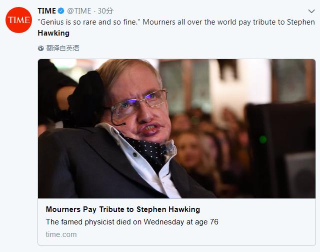 霍金去世,世界各地網(wǎng)友在社交媒體發(fā)起紀(jì)念活動(dòng)