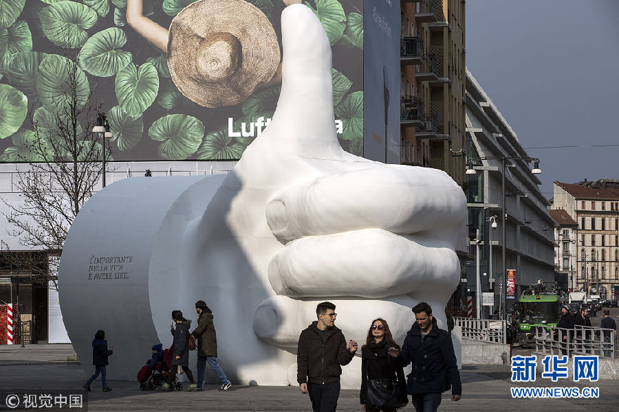畫風(fēng)清奇!意大利米蘭地標(biāo)建筑旁現(xiàn)“點贊”大拇指