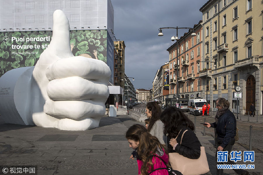 畫風清奇!意大利米蘭地標建筑旁現(xiàn)“點贊”大拇指