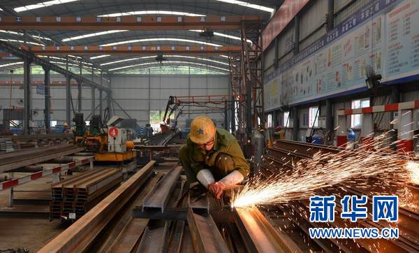 3月27日,在老撾南塔省,中鐵五局工人在車間內(nèi)加工鐵路施工材料。新華網(wǎng)發(fā) 劉艾倫攝