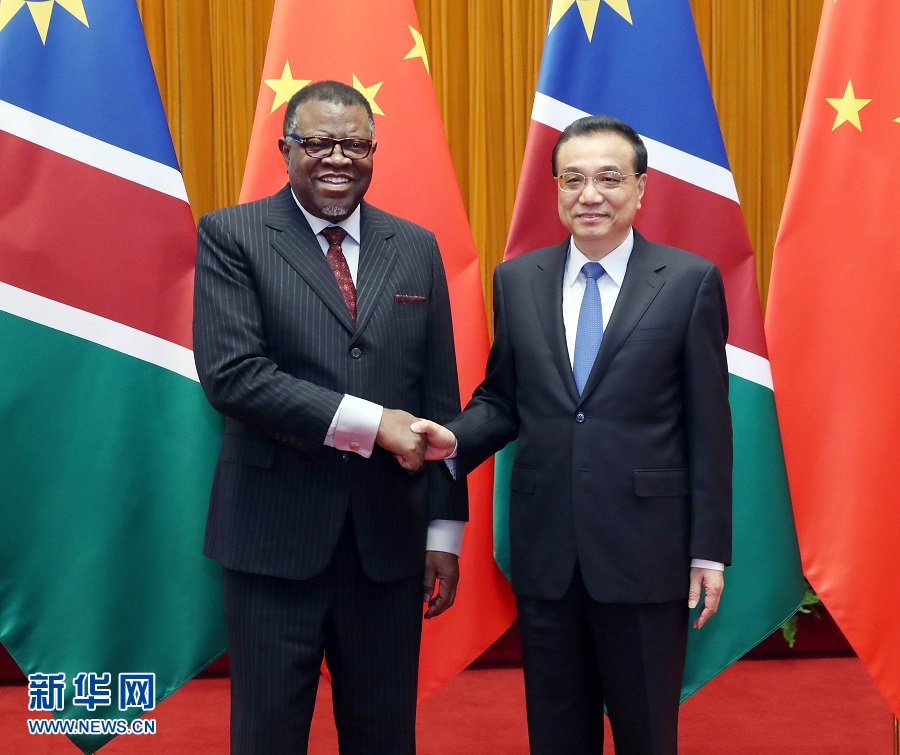 李克強表示,納米比亞是中國在非洲的重要合作伙伴。昨天,習近平主席同你舉行了富有成果的會談,將兩國關(guān)系提升為全面戰(zhàn)略合作伙伴關(guān)系。中方愿同納方鞏固政治互信,深化互利合作,加強在國際地區(qū)事務(wù)中的溝通協(xié)調(diào),開辟兩國關(guān)系更加美好的未來。