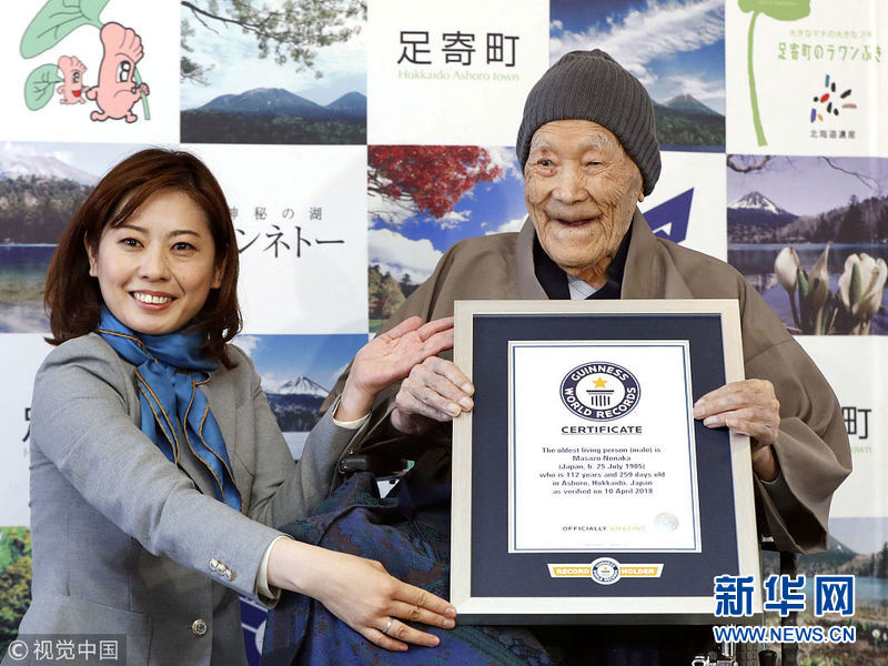 4月10日,日本足寄,日本男子Masazo Nonaka以112歲259天的年齡,獲得吉尼斯認(rèn)證的世界目前在世年齡最長的男性。 (圖片來源:視覺中國)