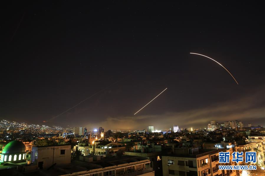 這是4月14日拍攝的遭受襲擊的敘利亞首都大馬士革。敘利亞國家電視臺14日報道說,當?shù)貢r間14日凌晨,美國等國對敘首都大馬士革發(fā)起軍事行動。 新華社/美聯(lián)