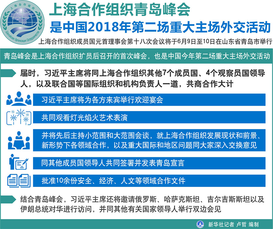 王毅宣布,上海合作組織成員國元首理事會第十八次會議將于6月9日至10日在山東省青島市舉行。中國國家主席習近平將主持會議并舉行相關活動。上海合作組織成員國、觀察員國領導人和有關國際組織負責人將應邀與會。