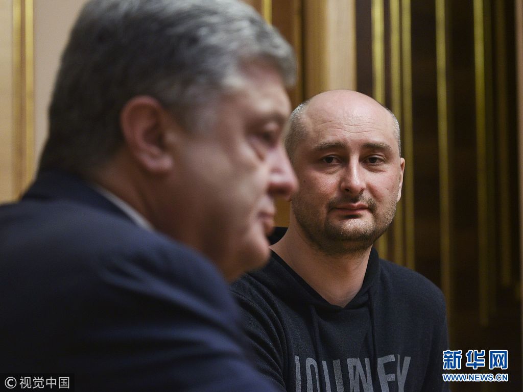 5月30日,烏克蘭基輔,烏克蘭總統(tǒng)波羅申科會(huì)見(jiàn)此前被報(bào)道“死亡”的俄羅斯記者巴布琴科。(圖片來(lái)源:視覺(jué)中國(guó))