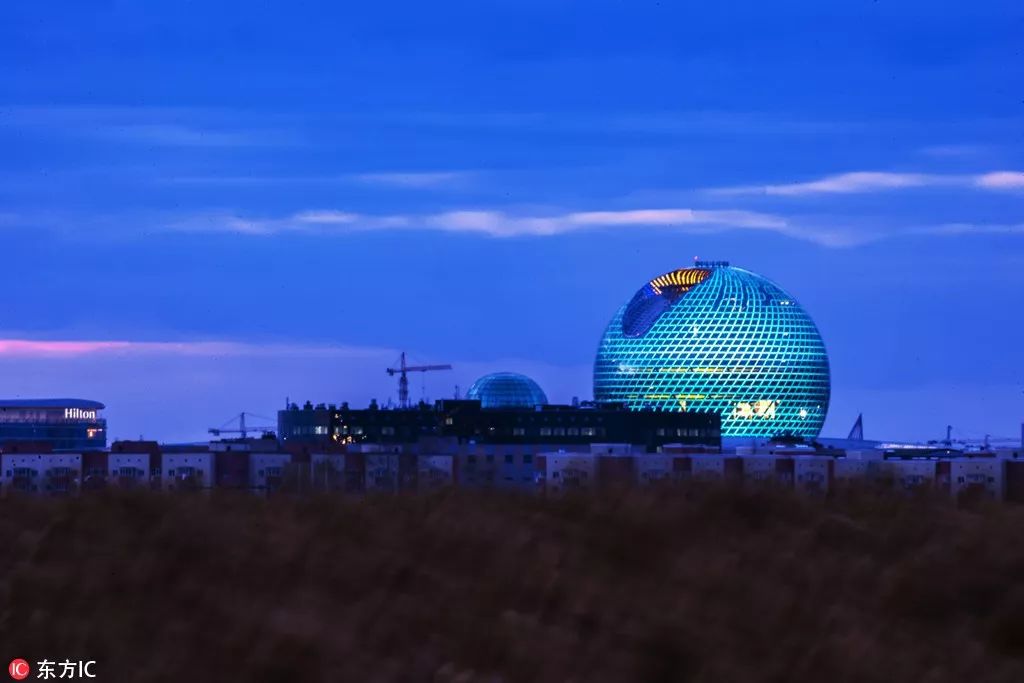 哈薩克斯坦阿斯塔納世博會主場館夢幻夜景,當今世界最大玻璃球形建筑。