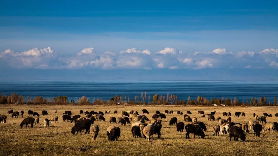 吉爾吉斯斯坦伊塞克湖沿岸的秋色。新華社記者 李剛 攝