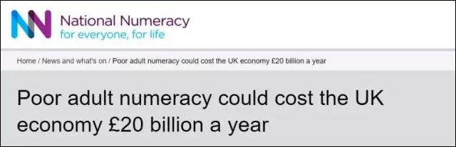 英國國家數(shù)學(xué)能力中心就曾“恨鐵不成鋼”地發(fā)布統(tǒng)計(jì)報(bào)告稱:英國成年人糟糕的數(shù)學(xué)水平會讓英國每年無意中損失200億英鎊。