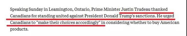 第三,大是大非上一定要團結(jié)一致。一說到團結(jié),有的人總會聯(lián)想過于豐富:要么認為這是要老百姓放棄自己的思考,要么認為必須通過極端方式表達自己洶涌的激情——我們印象里一向溫和的加拿大,這次是怎么做的?用美聯(lián)社報道的話:特魯多在利明頓市演講時表示:感謝加拿大民眾團結(jié)一致反對特朗普的制裁,并鼓勵民眾根據(jù)自己的實際情況做出要不要買美國產(chǎn)品的選擇。特魯多為什么這樣說?事實上,自從G7之后特朗普攻擊特魯多“軟弱”“虛偽”以來,推特上“購買加拿大產(chǎn)品”“抵制美國貨”“抵制美國”“擺脫川普”等話題就在不斷升溫,很多加拿大人調(diào)整了消費習慣,轉(zhuǎn)而購買自己國家的產(chǎn)品。網(wǎng)友們的這些抵制活動,被特魯多稱為是一股“愛國熱情”。