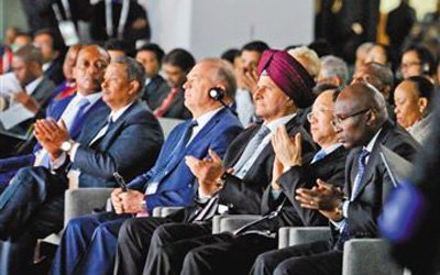 在金磚國家工商論壇會場,會議主持人在致開幕詞時,提議與會嘉賓起立鼓掌一分鐘,為金磚國家這些年取得的合作成就喝彩。坐在本報記者身旁的一位先生掌聲尤其熱烈,一邊鼓掌,一邊還發(fā)出歡呼聲。他是南非標準銀行總裁蘇卡尼·雅巴舍。