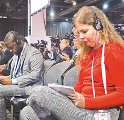 金磚國家工商論壇現(xiàn)場,記者正在認真記錄。本報記者 謝亞宏攝
