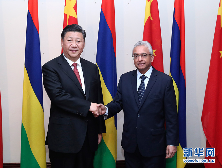 新華社路易港7月28日電(記者陳贄 霍小光)國(guó)家主席習(xí)近平28日在毛里求斯會(huì)見(jiàn)毛里求斯總理賈格納特。