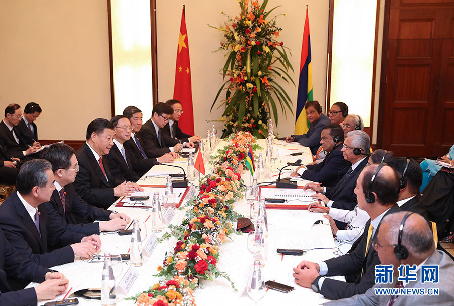 習(xí)近平強(qiáng)調(diào),中毛都是發(fā)展中國(guó)家,有著相似的發(fā)展經(jīng)歷和發(fā)展任務(wù)。當(dāng)前,中毛關(guān)系發(fā)展面臨新的重要機(jī)遇。我們要保持高層交往勢(shì)頭,加強(qiáng)政府部門、立法機(jī)構(gòu)、地方等往來(lái),繼續(xù)在涉及彼此核心利益和重大關(guān)切問(wèn)題上相互理解和支持。要挖掘務(wù)實(shí)合作潛力,提高雙方貿(mào)易和投資自由化便利化水平,早日商簽中毛自由貿(mào)易協(xié)定,發(fā)揮毛里求斯參與共建“一帶一路”的獨(dú)特區(qū)位優(yōu)勢(shì),加強(qiáng)溝通對(duì)接,深化廣泛領(lǐng)域合作。要加強(qiáng)人文交流,促進(jìn)相互了解。中方愿同毛方加強(qiáng)氣候變化南南合作,密切在國(guó)際事務(wù)中協(xié)作,維護(hù)發(fā)展中國(guó)家共同利益。