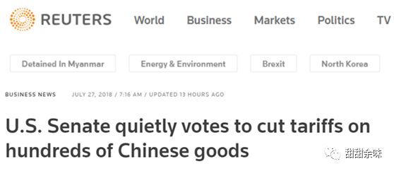 英國(guó)路透社日前報(bào)道,美國(guó)參議院7月26日通過(guò)了一個(gè)名為Miscellaneous Tariff Bill的法案,中文稱為“綜合關(guān)稅法案”或“關(guān)稅雜項(xiàng)法案”。報(bào)道的標(biāo)題頗有意味地用了個(gè)修飾詞“quietly”(靜悄悄地)——《美參議院悄悄通過(guò)立法降低數(shù)百種中國(guó)商品的關(guān)稅》。