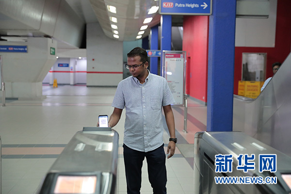 8月8日,在馬來西亞吉隆坡,乘客用電子錢包刷二維碼坐地鐵。 新華社記者 朱煒 攝
