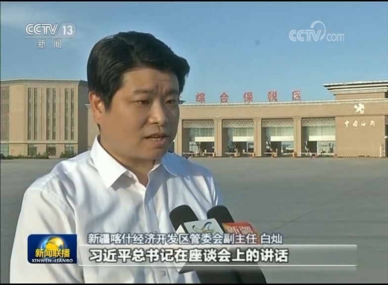 新疆喀什經(jīng)濟(jì)開發(fā)區(qū)管委會副主任 白燦:習(xí)近平總書記在座談會上的講話,為我們做好下一階段“一帶一路”工作提供了根本的遵循。我們將和周邊沿線國家按照“共商、共建、共享”的原則,共同推動跨國的基礎(chǔ)設(shè)施建設(shè)的互聯(lián)互通。