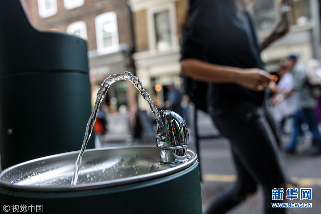 當(dāng)?shù)貢r(shí)間2018年8月28日,英國(guó)倫敦,民眾在公共飲水機(jī)旁飲水。倫敦市長(zhǎng)近日引進(jìn)了20個(gè)新的公共飲水機(jī),鼓勵(lì)人們自帶杯子取水喝,從而減少塑料垃圾。 (圖片來(lái)源:視覺(jué)中國(guó))