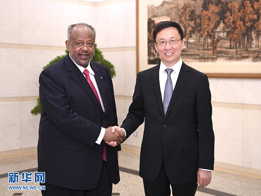 9月2日,國務(wù)院副總理韓正在北京釣魚臺(tái)國賓館會(huì)見吉布提總統(tǒng)蓋萊。 新華社記者 燕雁 攝