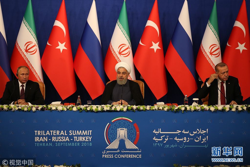 當(dāng)?shù)貢r(shí)間2018年9月7日,伊朗德黑蘭,當(dāng)日,俄羅斯、土耳其和伊朗三國首腦齊聚伊朗首都德黑蘭舉行峰會(huì),討論敘利亞局勢。(圖片來源:視覺中國)