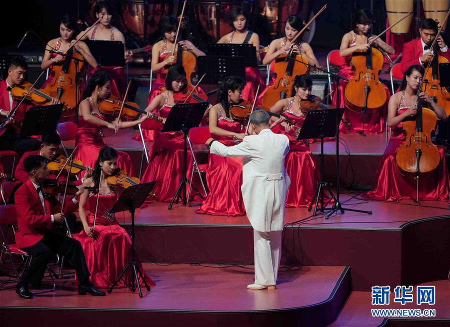 9月8日,演員在表演節(jié)目。當日,朝鮮在平壤體育館舉行國慶文藝演出。 新華社記者 邢廣利 攝