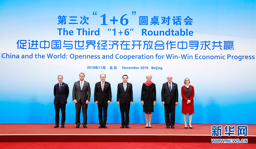 新華社北京11月6日電(記者鄭明達)國務(wù)院總理李克強6日下午在釣魚臺國賓館同世界銀行行長金墉、國際貨幣基金組織總裁拉加德、世界貿(mào)易組織總干事阿澤維多、經(jīng)濟合作與發(fā)展組織秘書長古里亞、金融穩(wěn)定理事會主席卡尼和國際勞工組織副總干事格林菲爾德舉行第三次“1+6”圓桌對話會。會議圍繞“促進中國與世界經(jīng)濟在開放合作中尋求共贏”的主題,就中國經(jīng)濟和改革開放等議題深入交流。