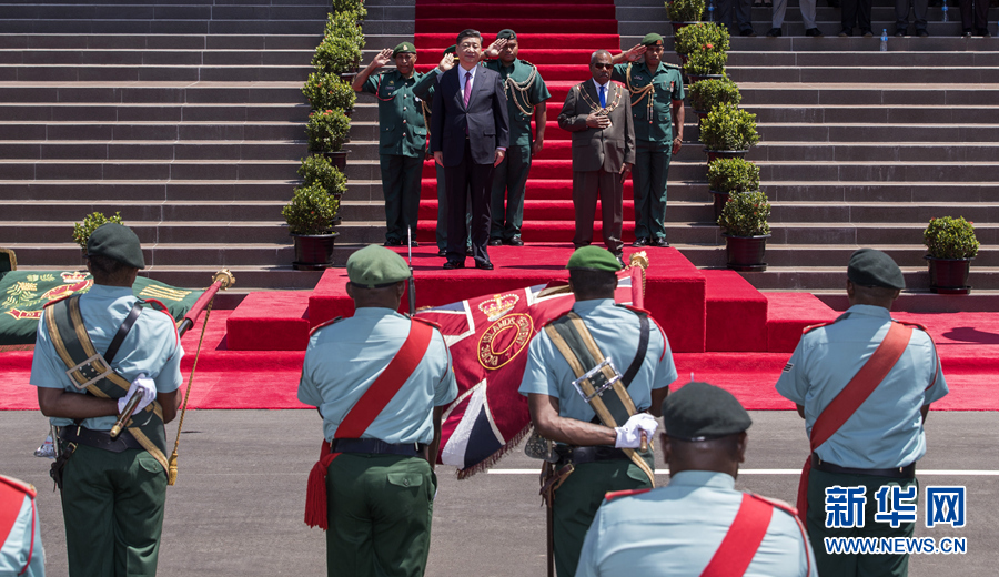 當(dāng)?shù)貢r(shí)間上午10時(shí)30分許,習(xí)近平乘車抵達(dá)議會(huì)大廈,受到達(dá)達(dá)埃熱情迎接。兩國(guó)領(lǐng)導(dǎo)人登上檢閱臺(tái)。軍樂隊(duì)奏中巴新兩國(guó)國(guó)歌?,F(xiàn)場(chǎng)鳴21響禮炮。習(xí)近平在達(dá)達(dá)埃陪同下檢閱儀仗隊(duì)。檢閱畢,習(xí)近平同巴新方主要官員握手,達(dá)達(dá)埃同中方陪同人員握手。兩國(guó)領(lǐng)導(dǎo)人共同前往議會(huì)大廈會(huì)見廳,巴布亞新幾內(nèi)亞議長(zhǎng)波馬特等在大廈外迎接并陪同會(huì)見。