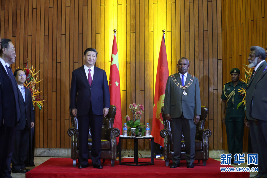 11月16日,國(guó)家主席習(xí)近平在莫爾茲比港會(huì)見巴布亞新幾內(nèi)亞總督達(dá)達(dá)埃。 新華社記者 鞠鵬 攝