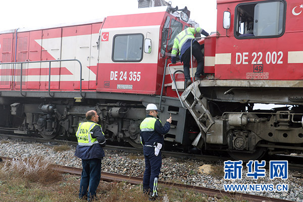這是11月26日在土耳其錫瓦斯省拍攝的火車相撞事故現(xiàn)場。 新華社發(fā)