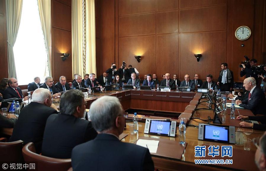 當(dāng)?shù)貢r(shí)間2018年12月18日,瑞士日內(nèi)瓦,俄羅斯、土耳其、伊朗三國(guó)外長(zhǎng)與聯(lián)合國(guó)敘利亞問(wèn)題特使一同出席會(huì)議,就成立敘利亞憲法委員會(huì)進(jìn)行討論。(圖片來(lái)源:視覺(jué)中國(guó))