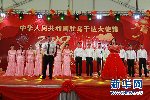 1月27日,在烏干達(dá)坎帕拉,人們在中國駐烏干達(dá)使館春節(jié)招待會上表演。 新華社記者 張改萍 攝