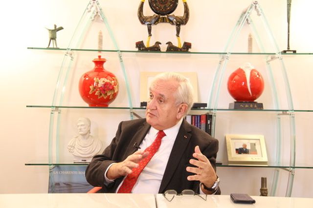 2月4日,法國前總理拉法蘭在巴黎接受新華社記者采訪。