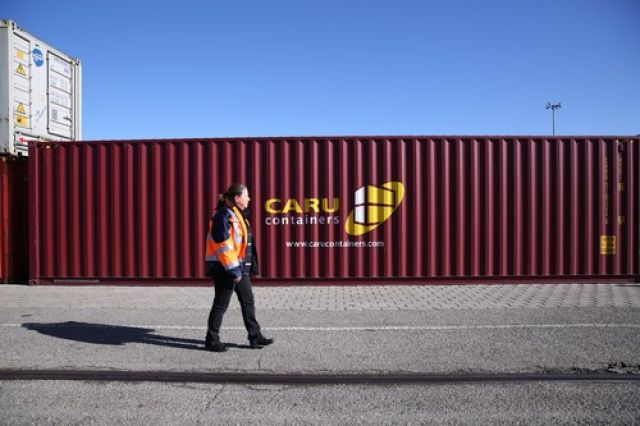 這是2019年3月5日,裝載有中國商品的集裝箱從中國武漢發(fā)出后,經(jīng)由中歐班列運(yùn)輸?shù)诌_(dá)法國里昂。新華社記者 唐霽 攝