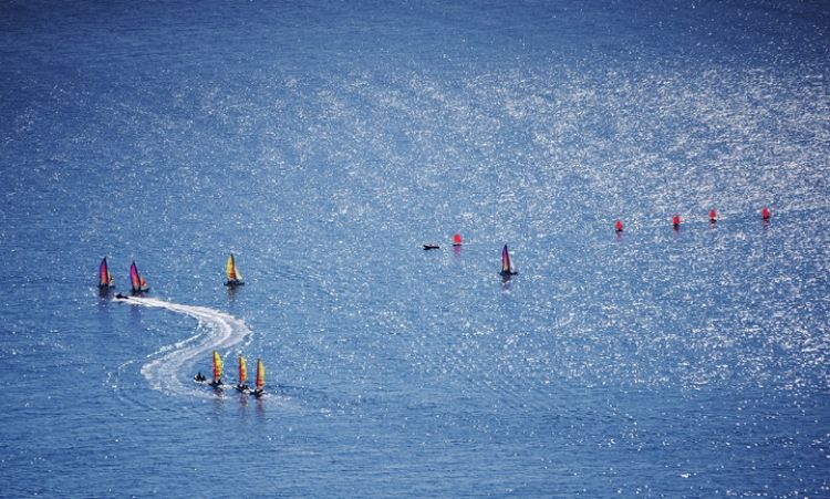 記者在摩納哥拍攝到的水上帆船。新華社記者費茂華攝