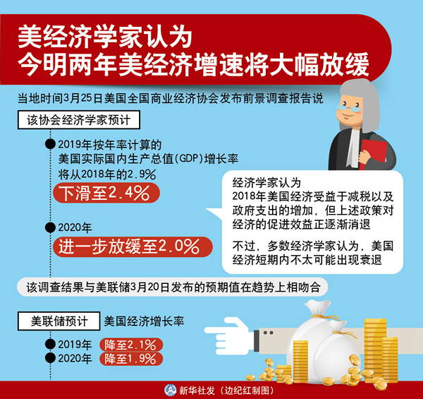 新華社華盛頓3月25日電(記者許緣 鄧仙來)美國全國商業(yè)經(jīng)濟(jì)協(xié)會(huì)25日發(fā)布前景調(diào)查報(bào)告說,該協(xié)會(huì)經(jīng)濟(jì)學(xué)家預(yù)測(cè),主要受全球經(jīng)濟(jì)增長放緩和美國貿(mào)易政策影響,今明兩年美國經(jīng)濟(jì)增速將大幅放緩。