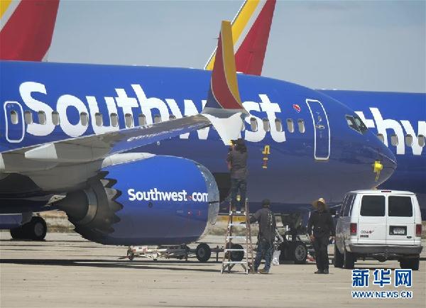 3月27日,在位于美國加利福尼亞州維克托維爾的南加利福尼亞物流機場,工作人員檢查美國西南航空公司的波音737 MAX 8型號飛機。美國波音公司27日發(fā)布公告,介紹了737MAX系列飛機軟件更新情況和對飛行員培訓的新內(nèi)容。 新華社發(fā)(趙漢榮攝)