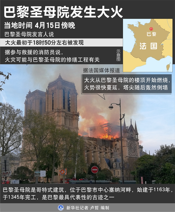 巴黎圣母院塔尖在大火中倒塌-新華網(wǎng)