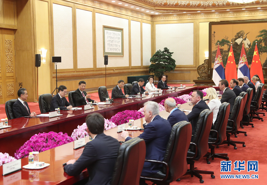 4月25日,國家主席習(xí)近平在北京人民大會堂會見塞爾維亞總統(tǒng)武契奇。 新華社記者 劉衛(wèi)兵 攝