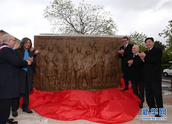 5月4日,為紀(jì)念留法勤工儉學(xué)運(yùn)動(dòng)100周年,大型雕塑《百年豐碑》在法國(guó)蒙達(dá)爾紀(jì)市鄧小平廣場(chǎng)落成。這座高2.9米、寬4.65米的雕塑,以浮雕形式,呈現(xiàn)十多位留法勤工儉學(xué)代表人物。