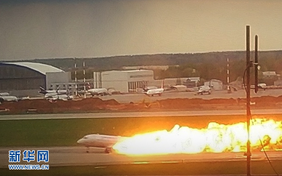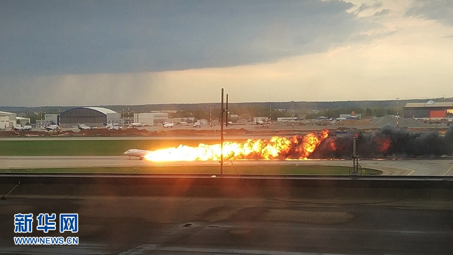 5月5日,一架客機(jī)在俄羅斯首都莫斯科謝列梅捷沃機(jī)場迫降。新華社發(fā)(謝爾蓋攝)
