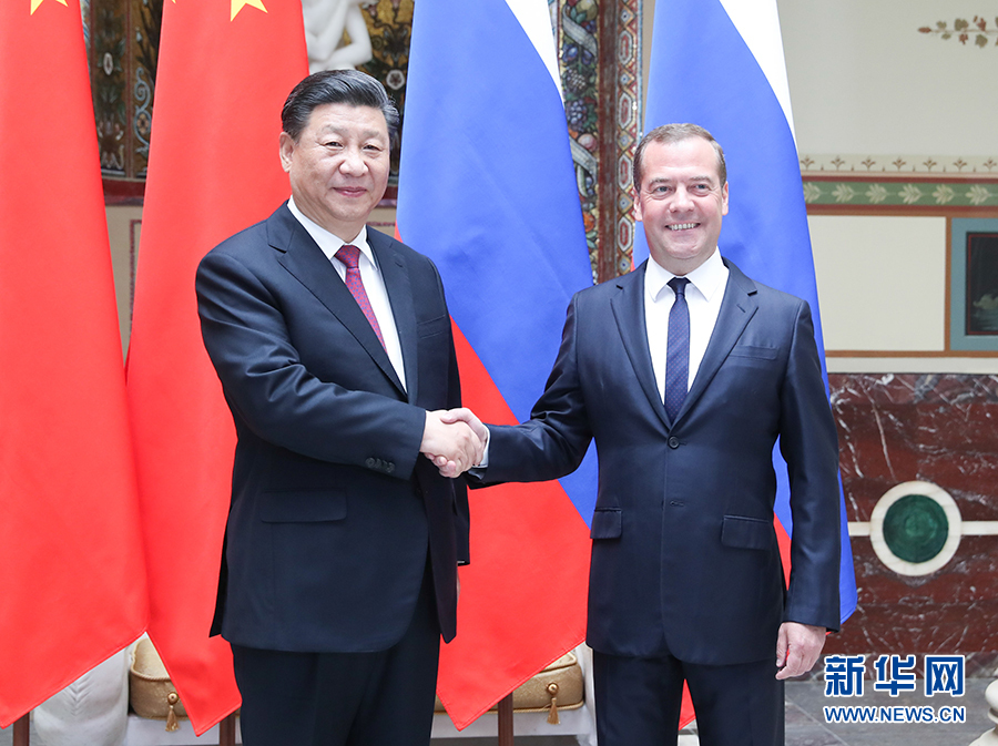 6月6日,國(guó)家主席習(xí)近平在莫斯科會(huì)見(jiàn)俄羅斯總理梅德韋杰夫。 新華社記者 姚大偉 攝
