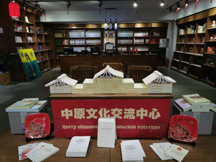 比什凱克市中心的新華書店里,中文書籍擺放在醒目位置。(新華社記者 高潔 攝)