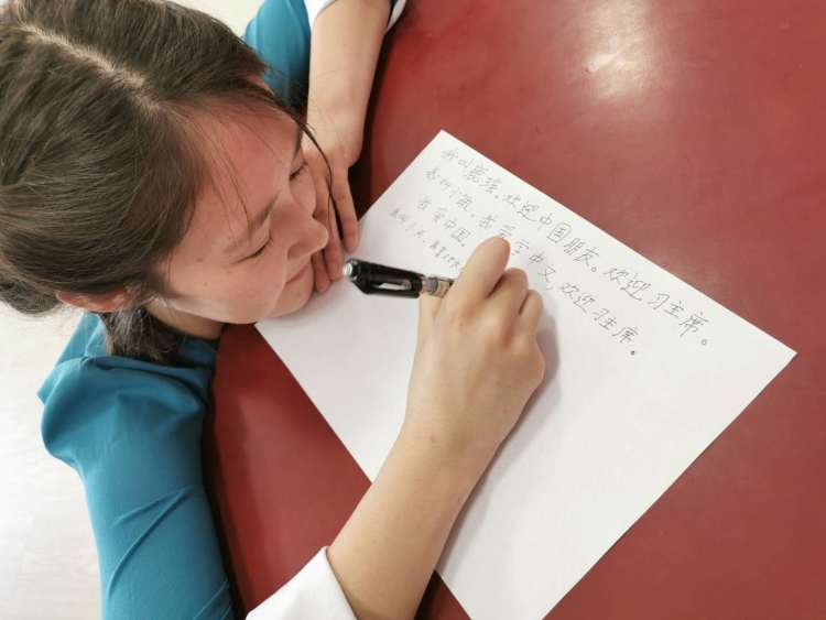 祁燕的學生們用中文寫下期待。(新華社記者 王申 攝)