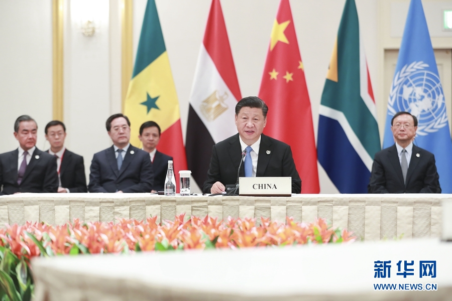 6月28日,國家主席習(xí)近平在大阪主持中非領(lǐng)導(dǎo)人會晤。中非合作論壇前任非方共同主席國南非總統(tǒng)拉馬福薩、非洲聯(lián)盟輪值主席國埃及總統(tǒng)塞西、中非合作論壇現(xiàn)任非方共同主席國塞內(nèi)加爾總統(tǒng)薩勒和聯(lián)合國秘書長古特雷斯出席。 新華社記者 龐興雷 攝