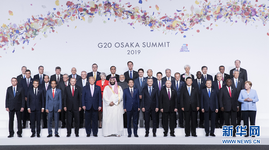 6月28日,二十國(guó)集團(tuán)領(lǐng)導(dǎo)人第十四次峰會(huì)在日本大阪舉行。國(guó)家主席習(xí)近平出席并發(fā)表題為《攜手共進(jìn),合力打造高質(zhì)量世界經(jīng)濟(jì)》的重要講話。這是習(xí)近平同其他與會(huì)領(lǐng)導(dǎo)人合影。新華社記者 黃敬文 攝
