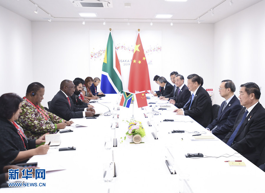 ?6月28日,國家主席習近平在大阪會見南非總統(tǒng)拉馬福薩。 新華社記者 燕雁 攝