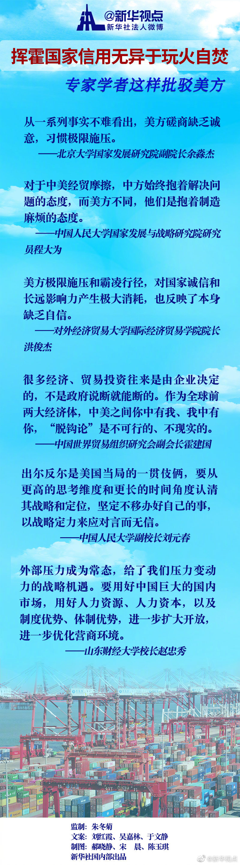 中國人民大學(xué)副校長劉元春認為,出爾反爾是美國當(dāng)局的一貫伎倆,要從更高的思考維度和更長的時間角度認清其戰(zhàn)略和定位,堅定不移辦好自己的事,以戰(zhàn)略定力來應(yīng)對言而無信。