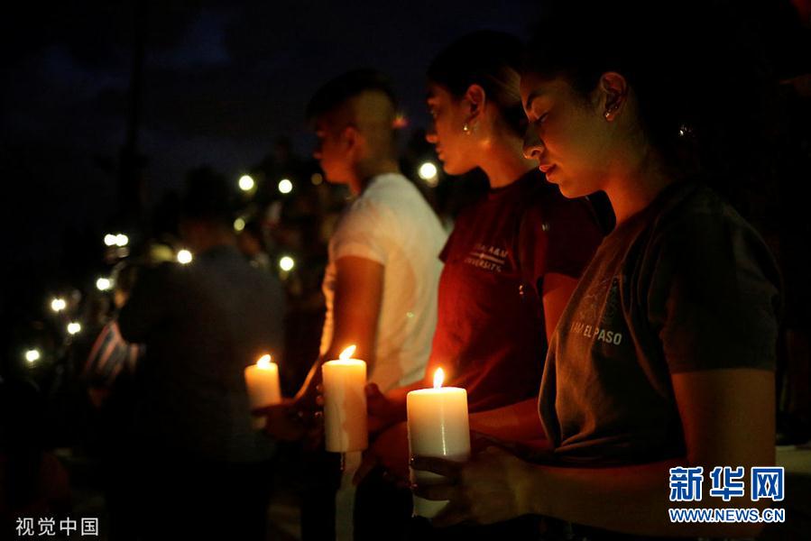 當(dāng)?shù)貢r(shí)間8月3日,美國(guó)得克薩斯州埃爾帕索,當(dāng)?shù)孛癖妳⒓邮匾够顒?dòng),悼念遇難者。當(dāng)?shù)匾患页邪l(fā)生嚴(yán)重槍擊案。據(jù)美國(guó)有線電視新聞網(wǎng)(CNN)最新消息,埃爾帕索市警察局長(zhǎng)格雷格·艾倫稱,槍擊案已造成20人死亡,26人受傷,一名來自得克薩斯州艾倫市的21歲白人男子目前已被拘捕。(圖片來源:視覺中國(guó))