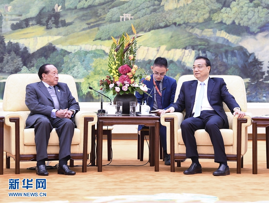 10月9日,國(guó)務(wù)院總理李克強(qiáng)在北京人民大會(huì)堂會(huì)見(jiàn)來(lái)華出席2019年中國(guó)北京世界園藝博覽會(huì)閉幕式的柬埔寨副首相賀南洪。 新華社記者 燕雁攝